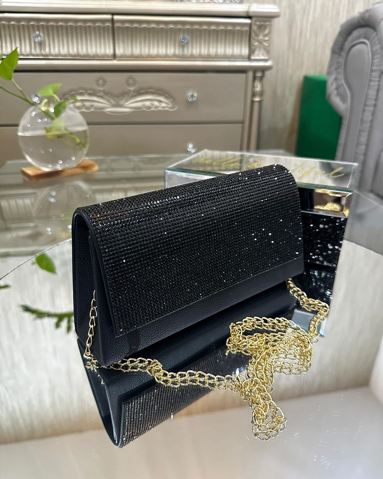 Forjada para deslumbrar, este accesorio destella glamour con su acabado diamantado y detalles metálicos. Perfecto para brillar en galas o celebraciones, eleva tu estilo con una confianza magnética que cautiva.