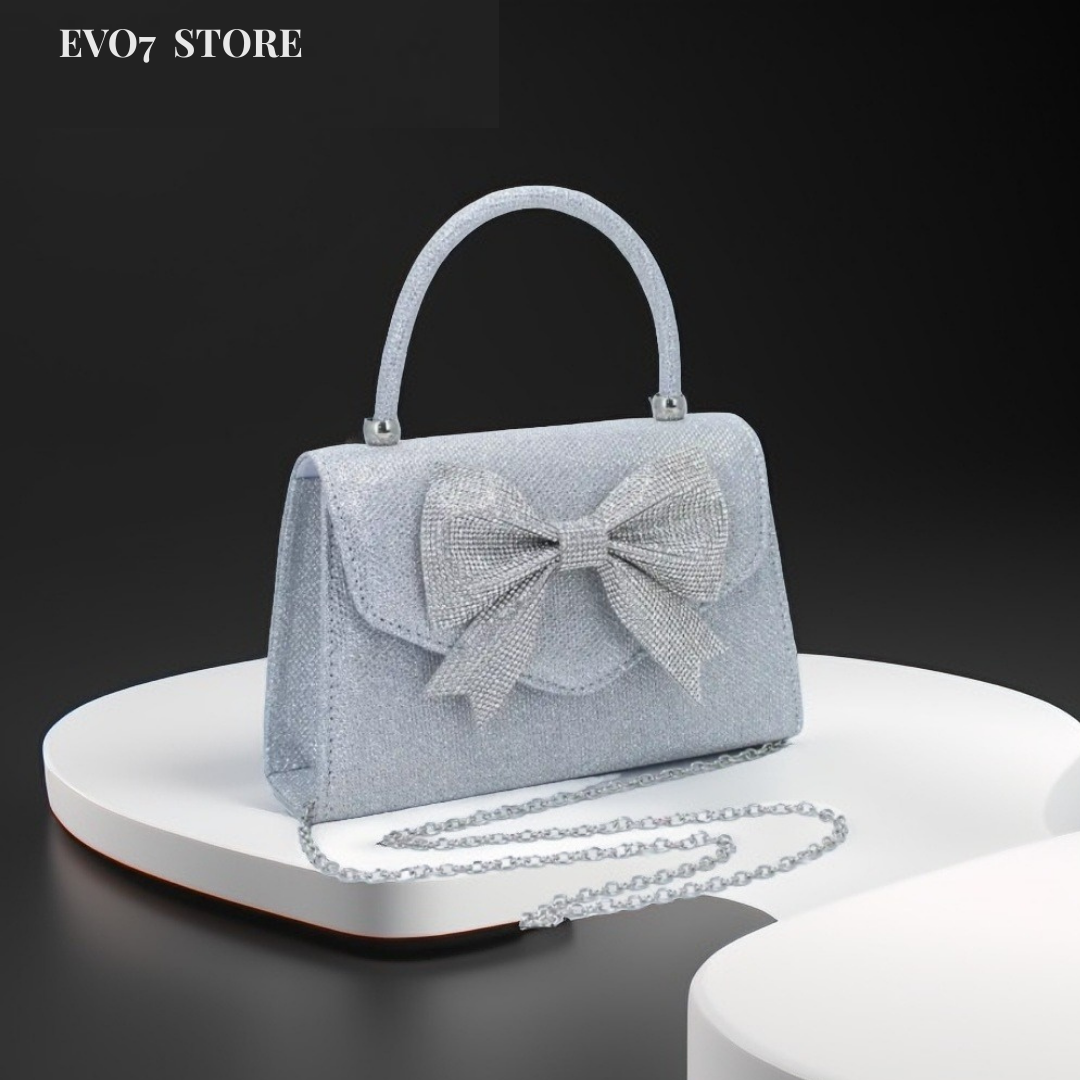 Diseñada para brillar en cada ocasión, esta cartera combina un diseño facetado que captura la luz como un diamante 💎 con un delicado lazo de satén que añade un toque romántico. Más que un accesorio, es una joya que realza tu elegancia y feminidad en cada momento. Perfecta para noches donde tu estilo es el protagonista absoluto. 🌟