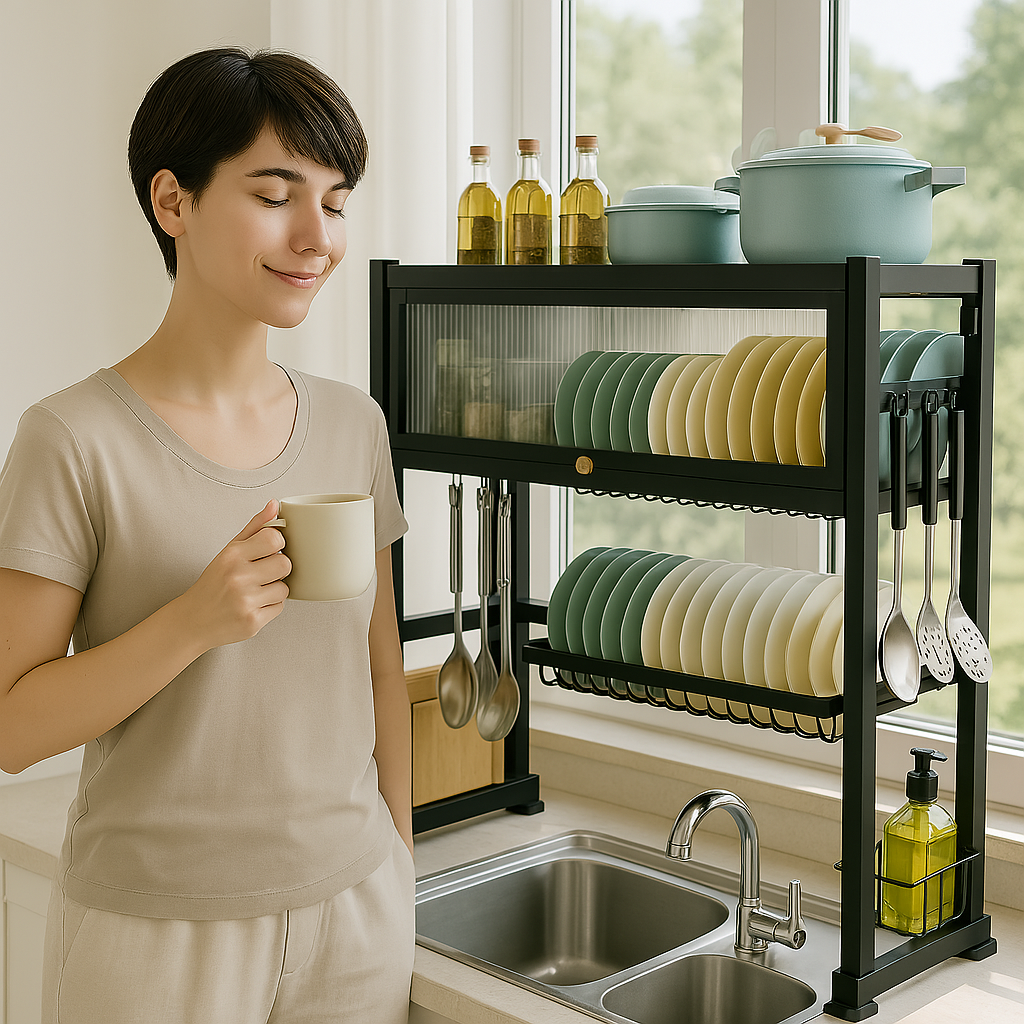 Despídete del desorden en la cocina. Este escurridor de platos de 2 niveles y 85 cm de ancho está diseñado para quienes valoran la funcionalidad sin sacrificar el estilo. Ideal para cocinas modernas, pequeñas o de alto tráfico.