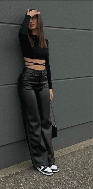 💫Pantalón cargo efecto cuero.Estilo utilitario con bolsillos decorativos que suman actitud y versatilidad.💫 Pantalón oversize efecto cuero